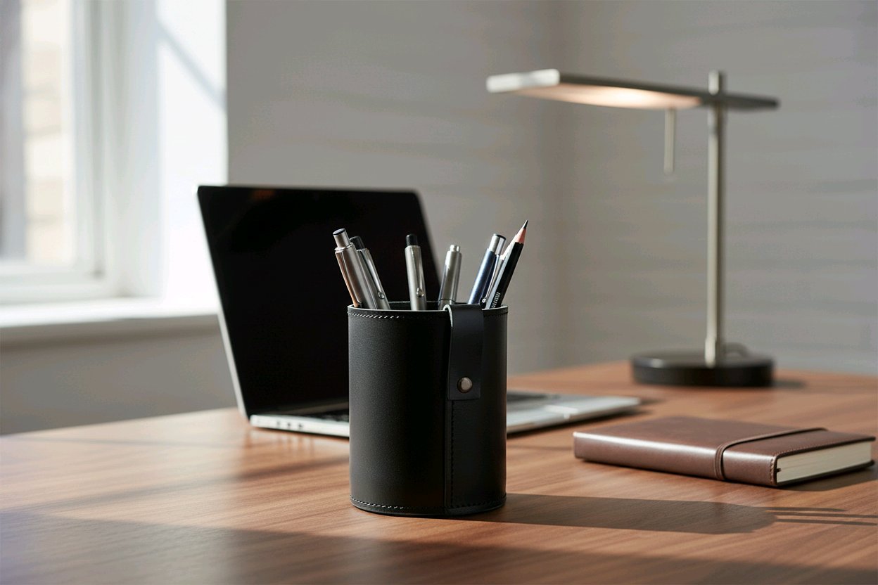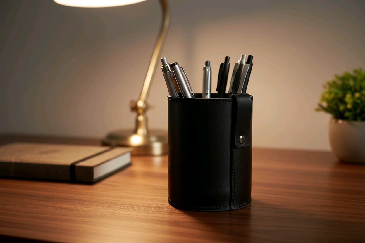 Natūralios odos pieštukinė/ rašiklių stovas.  Patogus nautoti ant darbo stalo. Dėkliukas tinkamas akiniams ar kitiekms daiktams laikyti .  Puiki dovana ir aksesuaras.