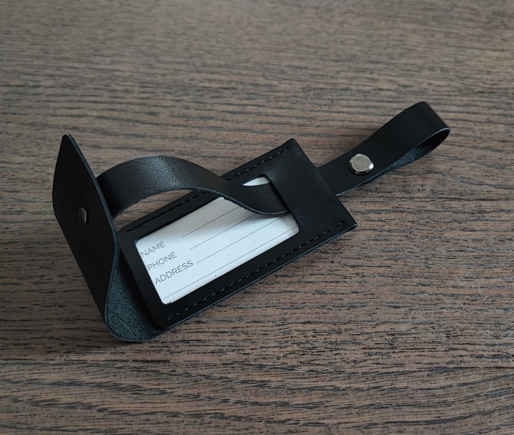 Odinis lagamino žymeklis su įtraukiamu dirželiu ir permatoma info kortelės kišenėle. Kišenėlės talpumas pritaikytas iki 3,5x7cm dydžio kortelei. Komplektuojama kartu su kortele informacijos užpildymui. Žymeklis gali būti graviruojamas ir pritaikytas dovanai.