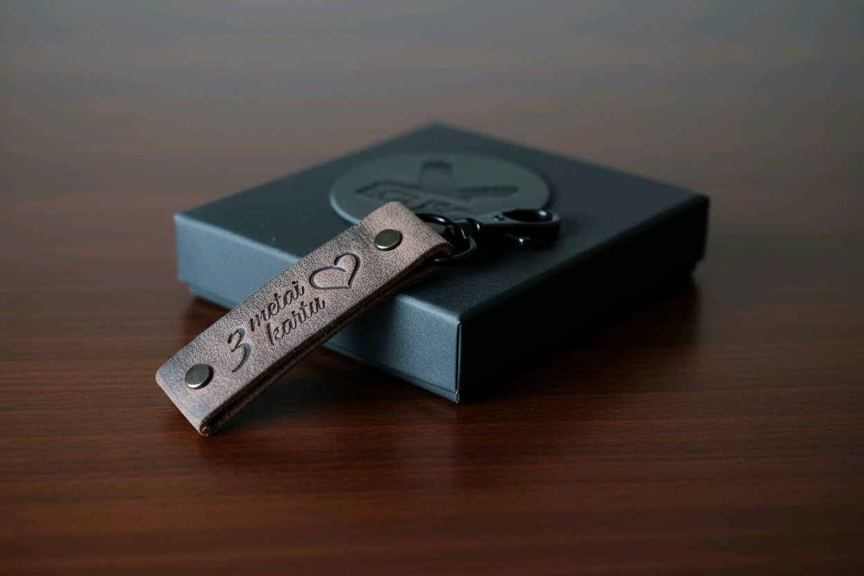 - Su įspaustu užrašu „3 metai kartu“ ir širdelė + individualus graviravimas antroje raktų pakabuko pusėje.