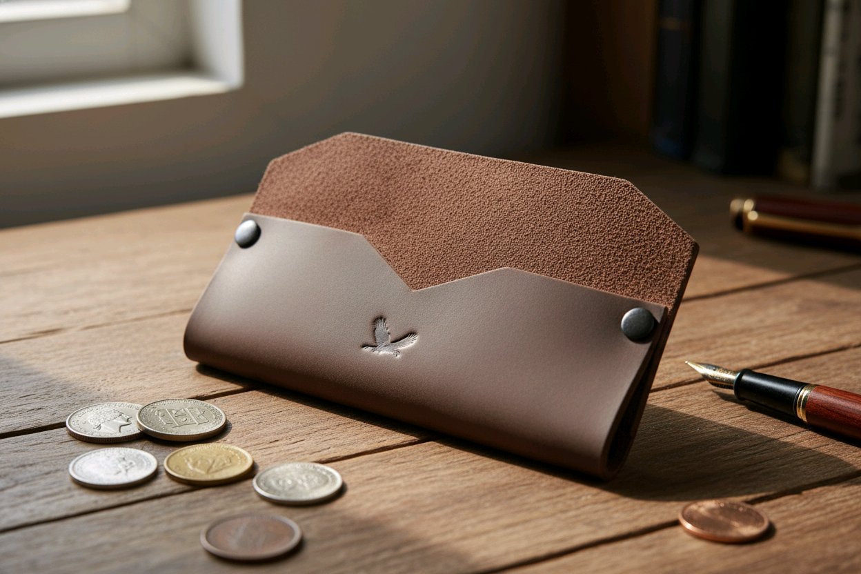 Natūralios odos, vieno skyriaus dėkliukas vizitinėms kortelėms.